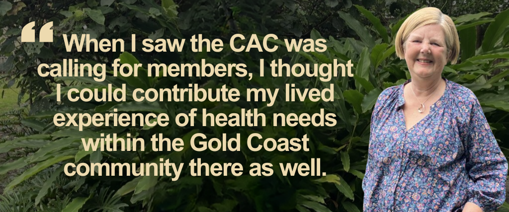“When I saw the CAC was calling for members, I thought I could contribute my lived experience of health needs within the Gold Coast community there as well.