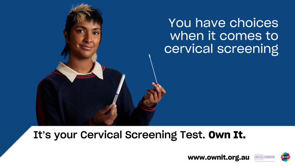 Talk to your GP to book a routine cervical screening test or explore your screening options, including self-collection. Learn more on the Department of Health, Disability and Ageing website.